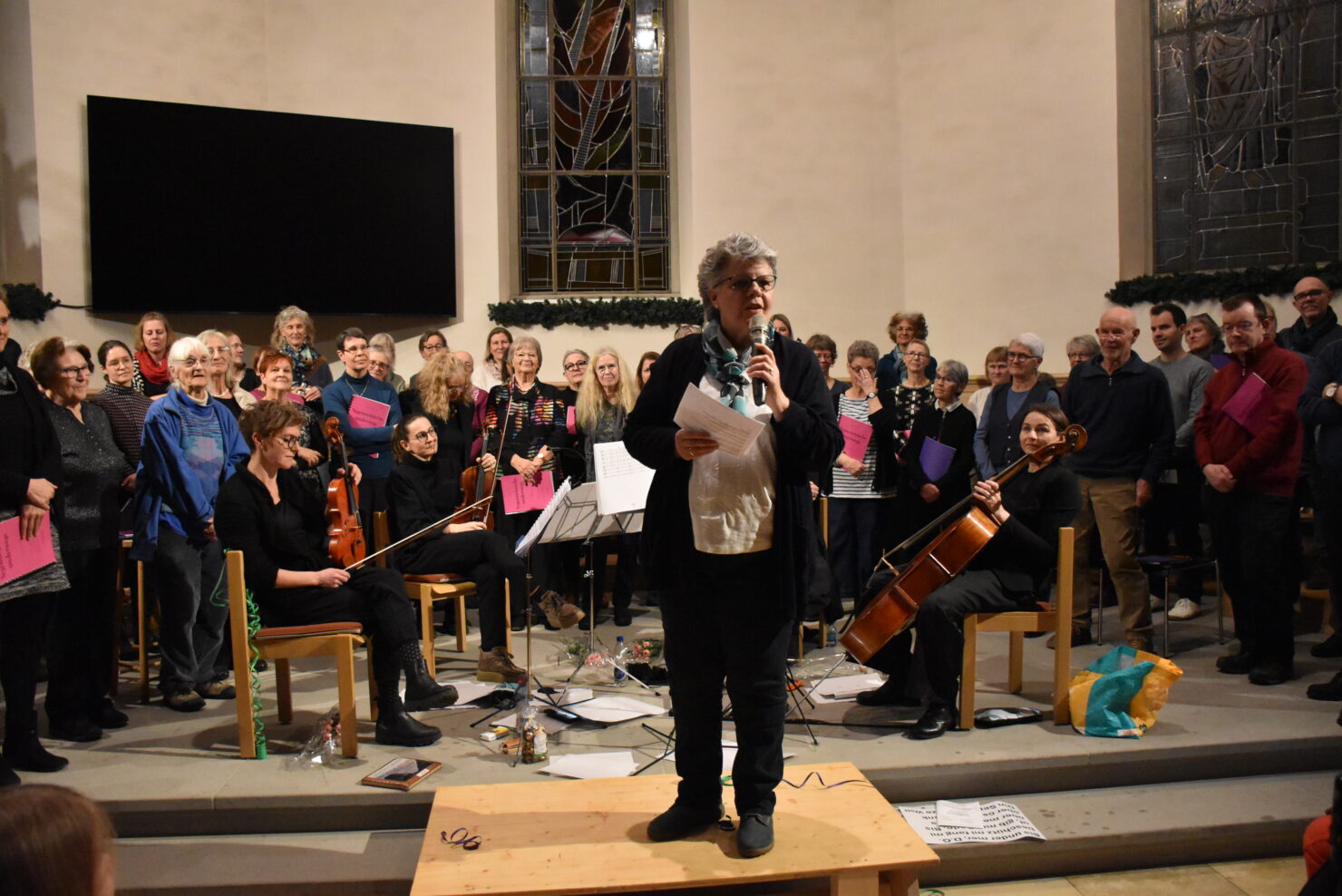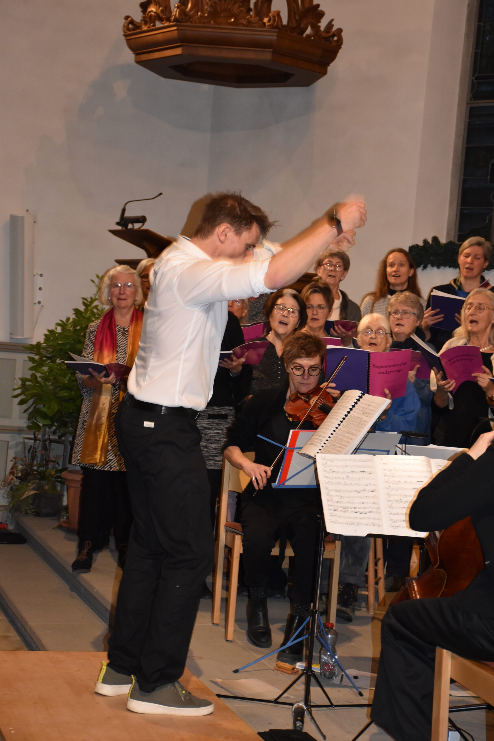 Der optimistische Grundton dieser Kompositionen kam kraftvoll, frisch und mutmachend sowohl bei den Singenden und Musizierenden als auch beim Publikum an. Die Lieder spiegelten Dankbarkeit über das gemeinsame Geschaffene wider, erinnerten an das menschliche Unterwegssein in der vergehenden Zeit und riefen zu Hoffnung, Frieden und Segen für die Zukunft auf – als Chorgemeinschaft ebenso wie individuell.